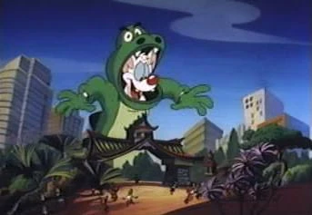 However, the real Godzilla emerges from the ocean and starts to rampage, making Brain think that the Godzilla is Pinky. The episode ends with the ray making everything on Earth grow, including the Earth itself, to the point that Pinky, the Brain, and even Godzilla are mouse-sized by comparison again.